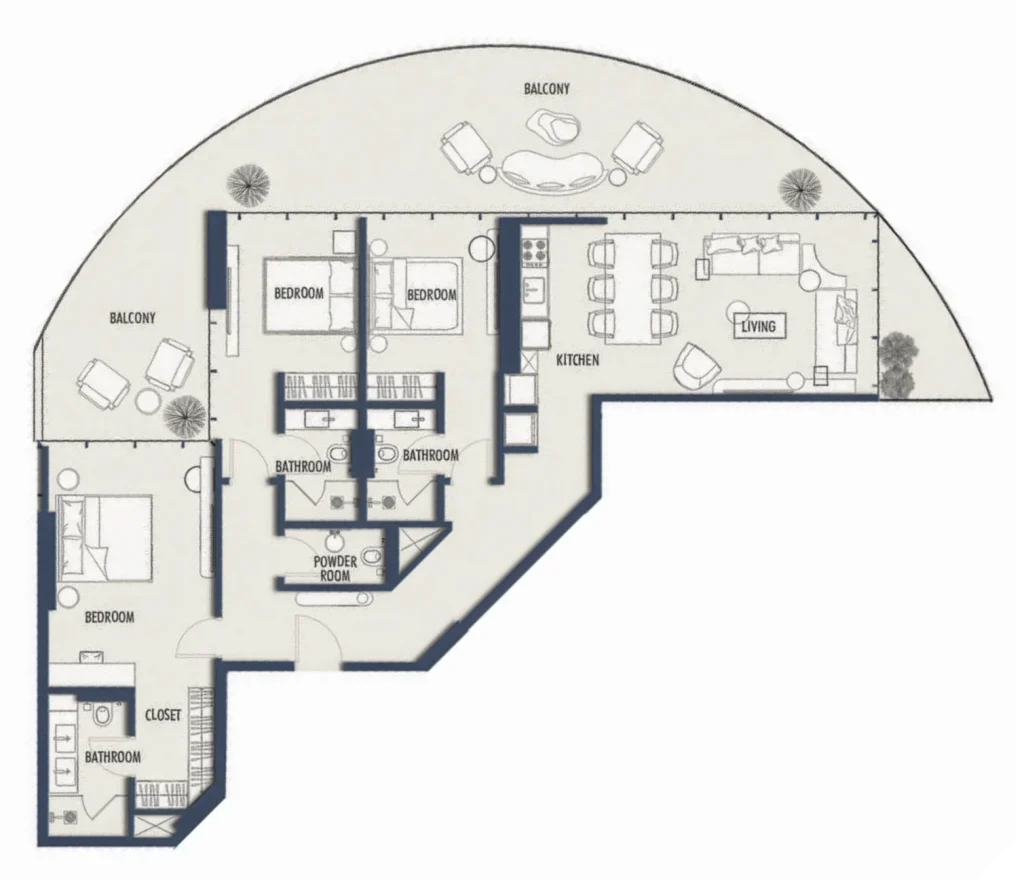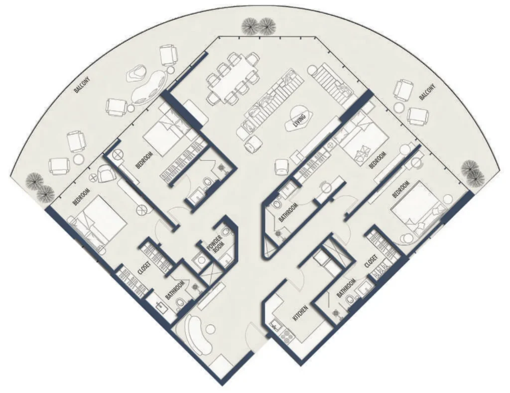 - استوديو – 4 غرف نوم