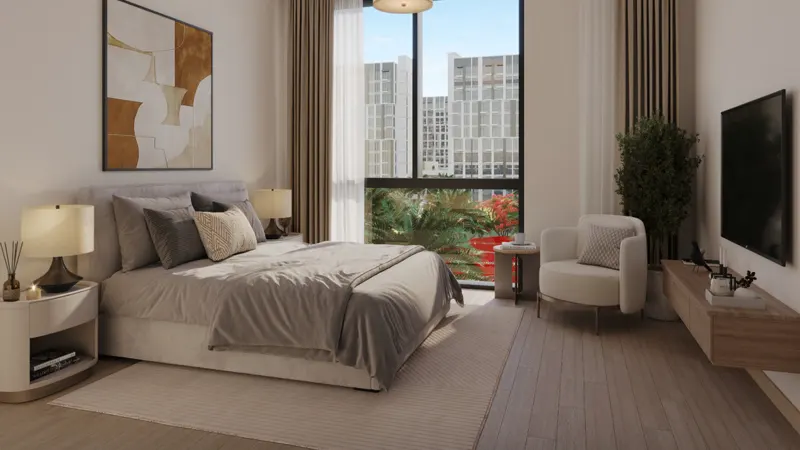 يُعد التصميم الداخلي لمشروع أيالا أون ذا بارك تحفة فنية حقيقية، حيث جرى تنسيق كل تفصيلة بعناية لتمنح السكان تجربة معيشية استثنائية. تخيّل العودة إلى منزلٍ يبدأ من ردهة استقبال أنيقة تبعث على الترحيب، يليها لحظات استرخاء في الفناء الخارجي المصمم بعناية، والذي يضم مسبحًا أنيقًا، ومنصة فسيحة للتشمّس، ومناطق مخصصة لألعاب الأطفال، لتكتمل بذلك أجواء الراحة والرفاهية.