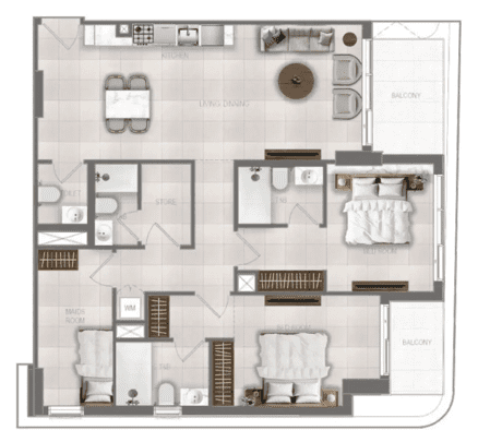 فلويد ون هو مشروع سكني ساحلي راقٍ يقع في جزر دبي، ويقدّم تفسيرًا معاصرًا للحياة على الواجهة المائية، متأثرًا بالسماء المفتوحة، وإطلالات البحر، وأجواء منتجعية مريحة. يعكس التصميم المعماري إحساسًا بالانسيابية والحركة، متناسقًا مع الإيقاعات الطبيعية للمحيط، ليخلق بيئة هادئة وراقية تظل مرتبطة بسلاسة بالمدينة. صُمم المشروع كملاذ خاص ضمن وجهة حيوية، ليجذب المقيمين الباحثين عن التوازن بين الهدوء والحياة الحضرية العصرية. يضم المشروع مجموعة مختارة من الوحدات السكنية الحديثة، مصممة بعناية لتعظيم دخول الضوء الطبيعي والإطلالات البانورامية على الساحل. يركّز التصميم الداخلي على المخططات الذكية، والتوازن بين المساحات، والطابع العصري النظيف الذي يتكيف بسهولة مع الحياة اليومية. يستفيد السكان من مجموعة من المرافق المتكاملة، بما في ذلك مسبح، مسبح للأطفال، صالة رياضية، نادي اجتماعي، منصة بجانب المسبح مع كراسي استلقاء، ومواقف مخصصة للسيارات، مما يدعم أسلوب حياة نشط واجتماعي مرتبط بالواجهة المائية. تم تصميم المساحات الداخلية باستخدام لوحات ألوان ناعمة وعصرية وتشطيبات فاخرة تعكس لغة التصميم الانسيابية للمشروع. النوافذ الكبيرة الممتدة من الأرض حتى السقف تسمح بدخول الضوء الطبيعي، بينما تعزز الأسطح المصقولة والخطوط المعمارية النظيفة إحساسًا عامًا بالهدوء. تأتي المطابخ مجهزة بخزائن عصرية ومواد عالية الجودة، مصممة لتكمل الطابع الحد الأدنى والأنيق للمشروع.