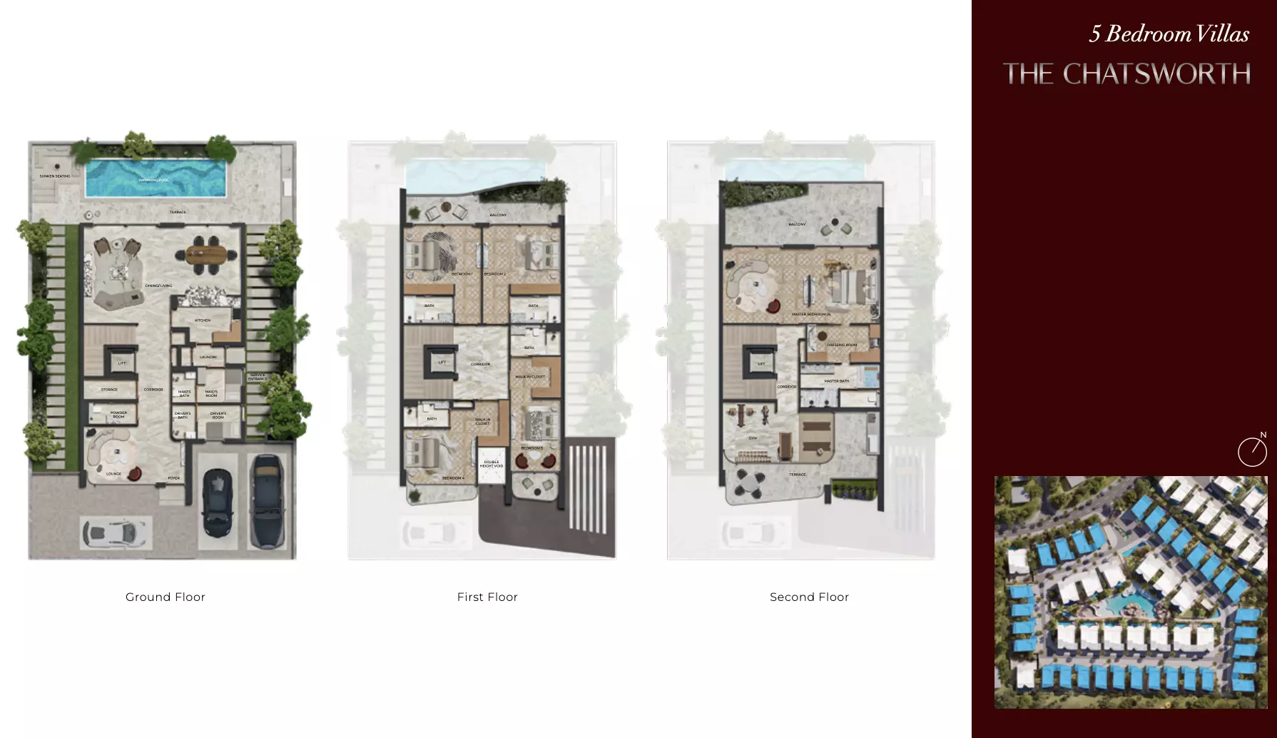 - من خمس الى ست غرف نوم