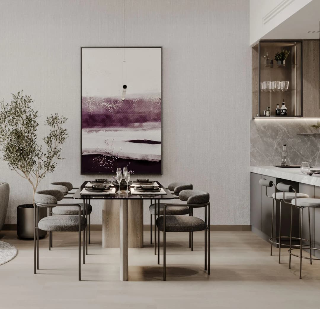 Offering an exclusive collection of studio, 1, 2 & 3 bedroom apartments, this remarkable building is designed to elevate contemporary living with its refined design, panoramic glass façades, and spacious balconies that embrace natural light. Every detail reflects an impeccable sense of style, creating a serene retreat where luxury meets comfort in perfect harmony.