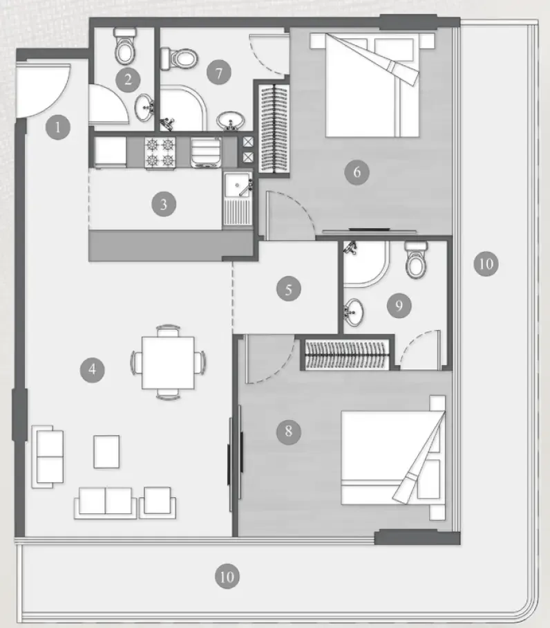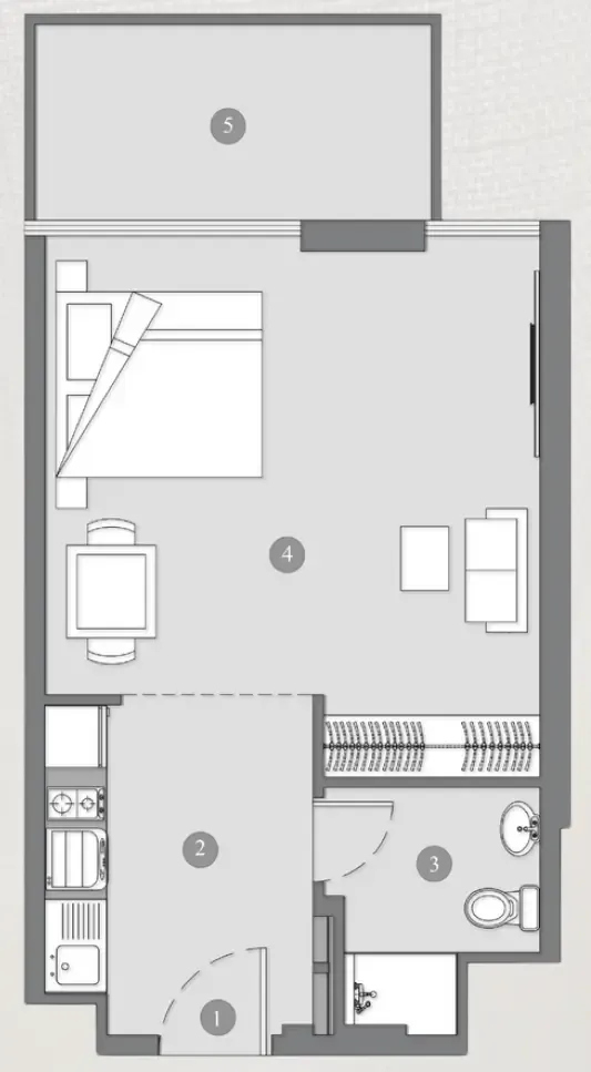 تتنوع الوحدات السكنية بين استوديوهات ذكية التصميم وشقق واسعة من غرفة وغرفتين نوم. تم تخطيط التصاميم الداخلية لتحقيق أقصى درجات الراحة والكفاءة، مع دمج المساحات المفتوحة، والإضاءة الطبيعية الوفيرة، والتشطيبات الراقية. كل وحدة تعكس توازنًا بين الأسلوب والوظيفة، مما يضمن بيئة منزلية تشعر بالفخامة والترحيب في الوقت ذاته.