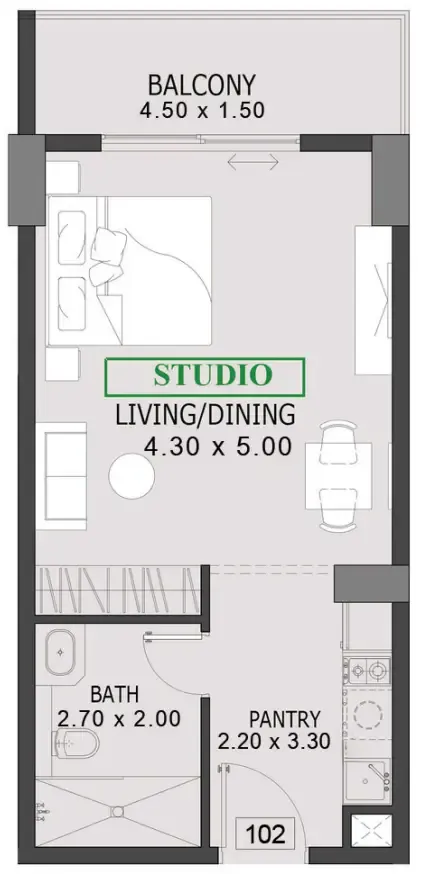 - استوديو بغرفتين نوم