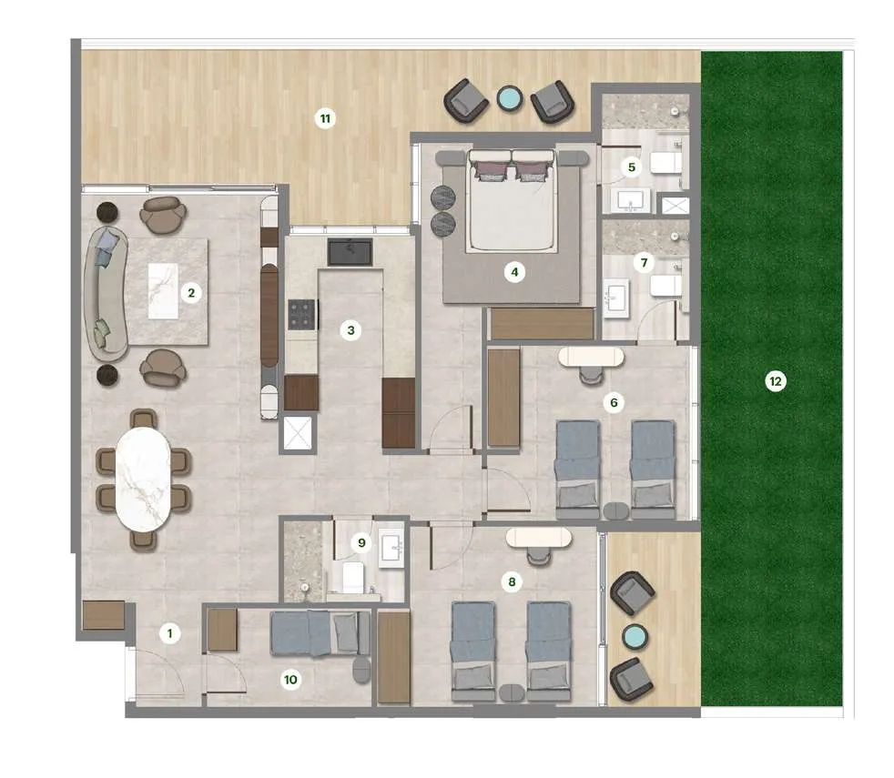 تم تصميم الوحدات السكنية بعناية لدعم الحياة الأسرية، وتعزيز الرفاهية، وتوفير راحة طويلة الأمد ضمن مجتمع ناشئ ومتصّل جيدًا. ومن خلال الدمج بين التصميم الراقي والإحساس القوي بالهدوء، يركّز بارك غرين ريزيدنسز على روح المجتمع، والاستدامة، والجماليات الخالدة. وتساهم المساحات المظللة بالأشجار، والمناطق المنسّقة، والتصاميم المدروسة بعناية في أسلوب حياة يوفّر الخصوصية وفي الوقت نفسه التواصل مع المحيط.