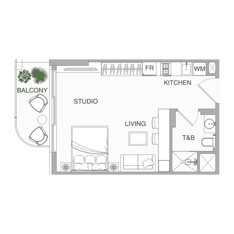 - استوديو – 3 غرف نوم