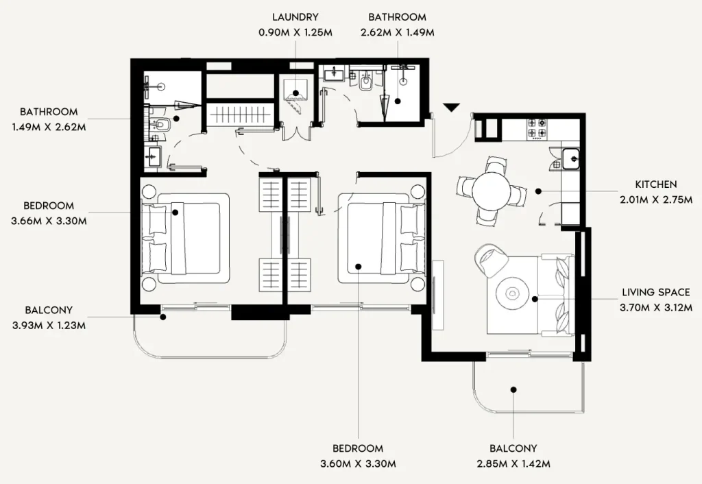 - Studio - 2 Bedrooms