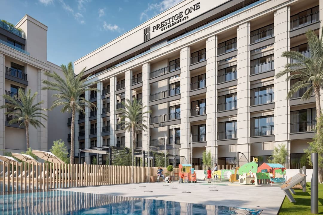 Berkeley Square by Prestige One is a refined residential masterpiece inspired by the elegance of Victorian-era London. With its stately U-shaped façade, classical symmetry, and pale-toned exterior accented by dark metal, the building evokes a timeless charm. The central courtyard invites light and calm into the heart of the residence, while the architecture speaks a quiet language of proportion, grace, and permanence — bringing to life a rare combination of tradition and modern poise. The project offers a curated collection of studio, 1-, 2-, and 3-bedroom residences, each thoughtfully designed with clean layouts, premium finishes, and a natural color palette. Interiors blend muted sophistication with modern utility — highlighted by airy living rooms, elegant kitchens, serene bedrooms, and spa-style bathrooms. Every apartment is a private haven, crafted to reflect quiet luxury and architectural dignity. Berkeley Square features over 40 lifestyle and wellness amenities spread across multiple levels, including a grand pool, floating cabanas, outdoor cinema, podcast room, Zen garden, skyview fitness center, and even an indoor football court. Residents can enjoy rooftop paddle and tennis courts, organic farming terraces, semi-amphitheatres, saunas, mini-golf, kids’ splash zones, and exclusive access to the Prestige One Clubhouse. With this rare blend of wellness, leisure, and heritage-inspired design, Berkeley Square redefines what it means to live with grace in Dubai.