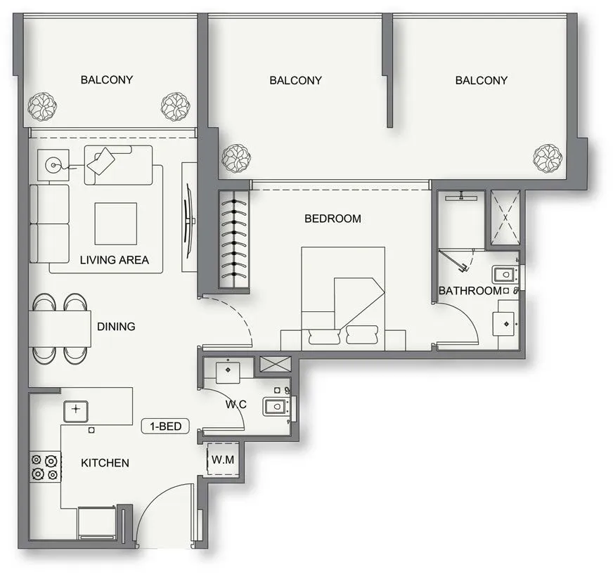 Binghatti Cullinan is a luxurious multifunctional project by Binghatti, located in the prestigious Al Jaddaf community. The development features a basement level, a ground floor, four podium levels, fourteen residential floors, and a rooftop. The project offers a variety of units, including studios, one-, two-, and three-bedroom apartments, as well as commercial spaces. The architecture of the complex is defined by Binghatti’s signature clean lines and geometric forms, creating a modern, recognizable silhouette that blends harmoniously with the surrounding landscape. The interiors are designed in a contemporary style, utilizing high-quality materials to ensure a luxurious and comfortable living experience. Residents of Binghatti Cullinan will enjoy a wide range of amenities, including a swimming pool, a fully equipped gym, a sports court, and numerous areas for relaxation and social interaction. These features provide a balanced lifestyle that combines comfort, convenience, and wellness. Apartments in Binghatti Cullinan feature modern finishes and high-end materials, with fully fitted kitchens, built-in wardrobes, and premium flooring. The contemporary design is complemented by elegant details in the kitchen and bathroom, providing residents with a ready-to-move-in living experience.
