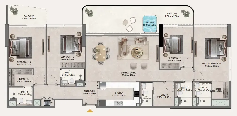 Hermina by Casagrand is an extraordinary seafront residence on Dubai Islands, offering an exclusive lifestyle where the vibrance of the city meets the calm of the coast. The project presents a refined selection of 1, 2, and 3.5 bedroom apartments along with opulent 3 and 4 bedroom penthouses, each thoughtfully designed to maximize space, privacy, and breathtaking views of the waterfront and Dubai skyline. Every residence features double-height balconies, abundant natural light, and fully furnished premium branded layouts. The project elevates living standards with an impressive range of world-class amenities designed for leisure, wellness, and family enjoyment. Residents can unwind in swimming pools, spa and steam rooms, or relax at pool cabanas, while fitness enthusiasts benefit from a gym, aqua gym, yoga and meditation spaces, and a walking track. Entertainment comes alive with a mini theatre, sky cinema, trampoline area, and indoor games, complemented by landscaped podiums, children’s play areas, and promenades linked directly to the marina. Casagrand Hermina blends modern technology with eco-conscious living. Also, its prime location in Dubai Islands ensures excellent connectivity. Hermina by Casagrand stands as a landmark opportunity — it is more than just a residence, it is an invitation to embrace a world where luxury, innovation, and coastal beauty come together in perfect harmony. The interiors reflect thoughtful craftsmanship and a commitment to healthy, modern living. Residences feature contemporary design by HAO Architects, eco-friendly interior materials, and non-toxic paint to support wellness-focused environments. Smart-home controls manage lighting, temperature, and security, complemented by a built-in security system with voice or touch operation. Kitchens come fully equipped, and all units are fully furnished with premium selections, creating a turnkey lifestyle defined by elegance, sustainability, and comfort.