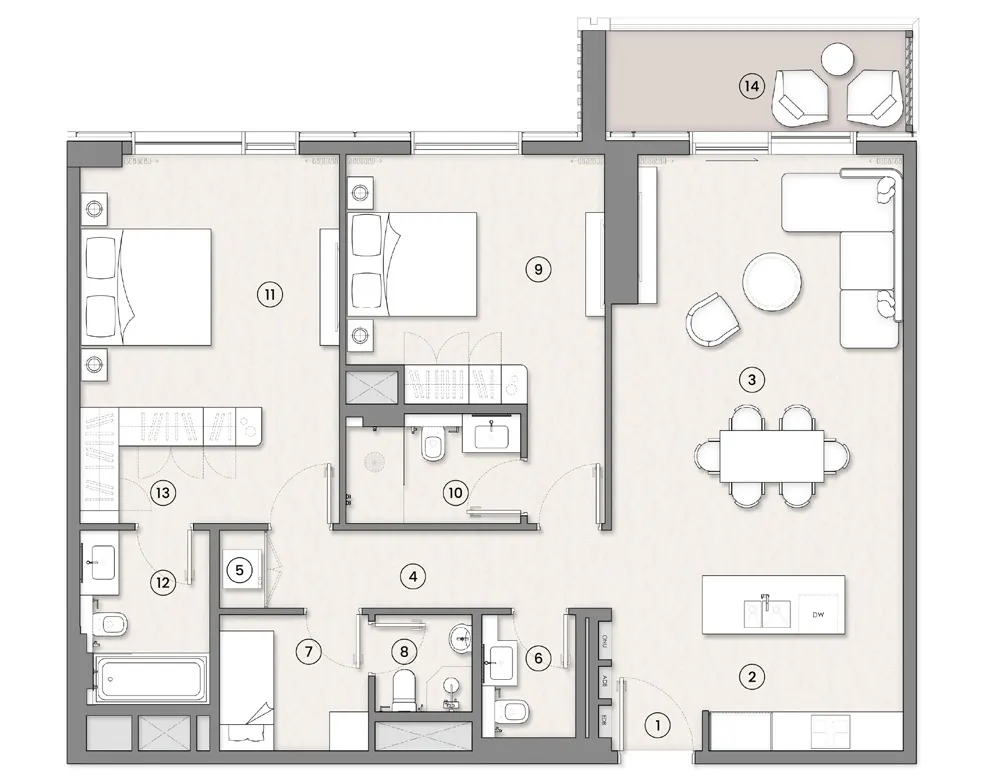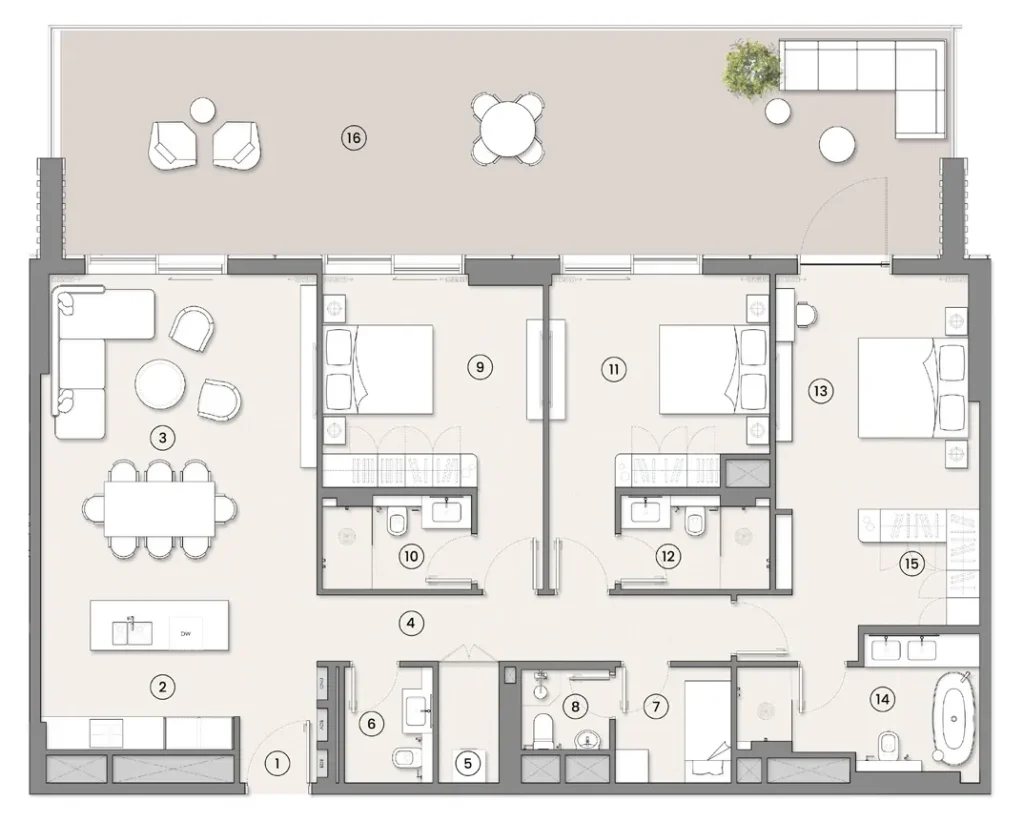 Tara Park is a contemporary residential development by Modon located on Reem Island in Abu Dhabi, designed to create a balanced lifestyle where urban convenience meets a calm, community-oriented environment. The first phase features two residential towers offering thoughtfully planned apartments surrounded by landscaped greenery and open public spaces. Positioned directly opposite Reem Mall and close to key destinations such as Al Fay Park, Sorbonne University, and major business districts, the project combines accessibility with a sense of tranquillity and everyday comfort. The development is conceived as a connected neighbourhood where pathways, gardens, and shared spaces encourage interaction and a relaxed pace of life. Residents benefit from a wide range of lifestyle-oriented facilities designed to support both activity and relaxation. The community includes a central swimming pool and a dedicated kids’ pool, alongside a fully equipped fitness studio for daily wellness. Outdoor amenities feature landscaped gardens, shaded walkways, open lawns, and a jogging track, creating inviting environments for recreation and social gatherings. Additional facilities include a padel court, multi-purpose sports court, adventure playground, BBQ areas, co-working and study zones, indoor kids’ play spaces, and residents’ lounges. A retail plaza, nursery, and a connecting bridge to Reem Mall further enhance convenience and integrate the development with the surrounding urban fabric. The residences are designed with contemporary interiors that emphasize comfort, practicality, and natural light. Living spaces feature modern finishes and carefully planned layouts that maximize openness and functionality. Kitchens are integrated with sleek cabinetry and dedicated dining areas, creating a seamless connection between cooking and living spaces. Bathrooms are finished in a clean, modern style with refined surfaces, while bedrooms include well-organized layouts with walk-in closets in selected units. Throughout the apartments, the interior palette combines contemporary materials with warm tones to create a calm and welcoming residential atmosphere.